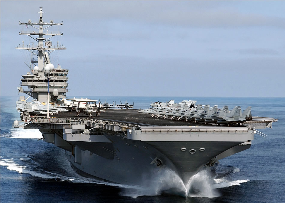 Pacific Ocean (July 25, 2005) � The Nimitz-class aircraft carrier USS Ronald Reagan (CVN 76) performs a high speed run during operations in the Pacific Ocean. Reagan and embarked Carrier Air Wing Fourteen (CVW-14) are currently underway conducting Tailored Ships Training Availability (TSTA). U.S. Navy photo by Photographer�s Mate 1st Class James Thierry