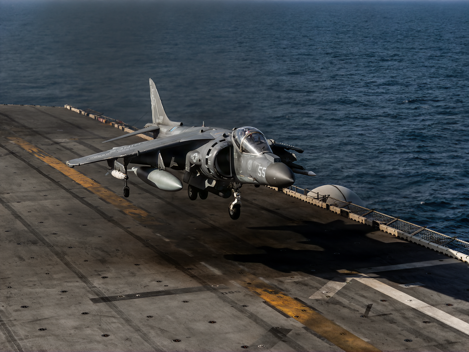 CARIBBEAN SEA - A U.S. Marine Corps AV-8B Harrier II with Marine Medium Tiltrotor Squadron (VMM) 263 (Reinforced), 22nd Marine Expeditionary Unit (Special Operations Capable), prepares to land aboard the Wasp-class amphibious assault ship USS Iwo Jima (LHD 7) during flight operations while underway in the Caribbean Sea, Sept. 27, 2025. U.S. military forces are deployed to the Caribbean in support of the U.S. Southern Command mission, Department of War-directed operations, and the president’s priorities to disrupt illicit drug trafficking and protect the homeland. (U.S. Marine Corps photo by Sgt. Tanner Bernat)